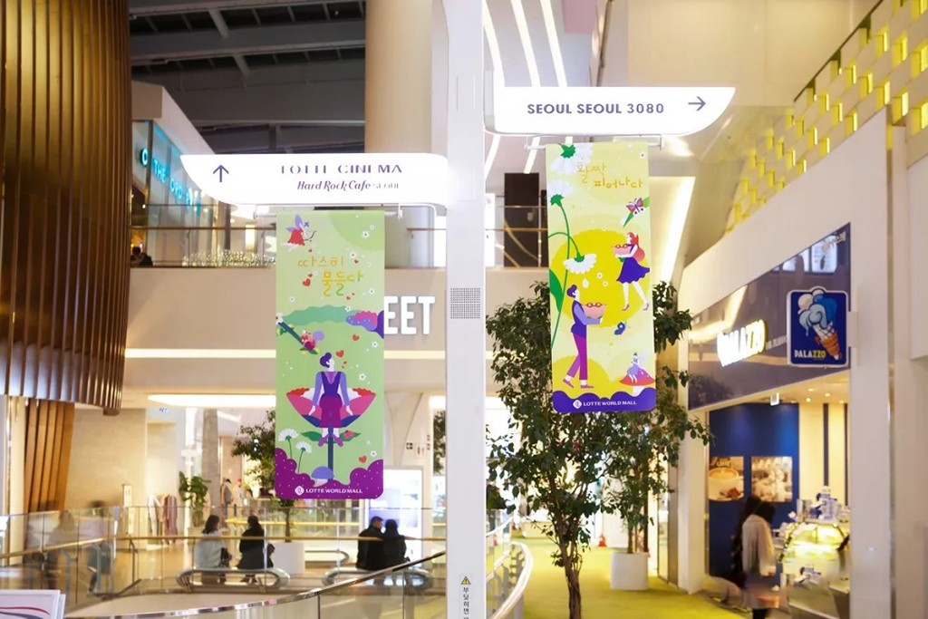 樂天購物中心夏季主視覺是由韓國的插畫家-Shinyoung 所創作,作品敘事性的展示,而不是來自于單一的設計背景。通過更加直觀、多元化的視覺體驗,讓大家沉浸于樂天購物中心的場景世界當中。